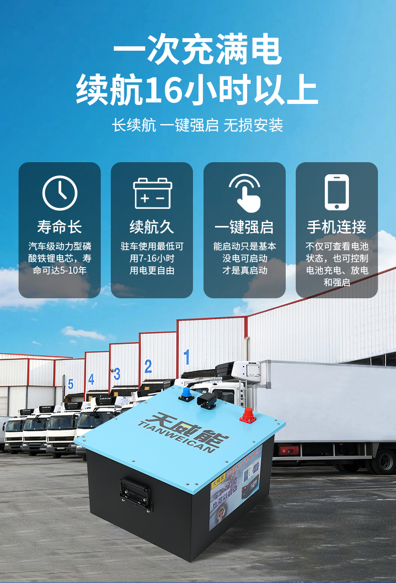 一、核心参数 基本规格: 尺寸:445mm×335mm×230mm 标称电压 25.6V 适配货车 24V 系统 可无损替换原车电2 充放电性能: 充电电流 50A-150A 充电截止电压 29.2V 放电持续电流 400A ...